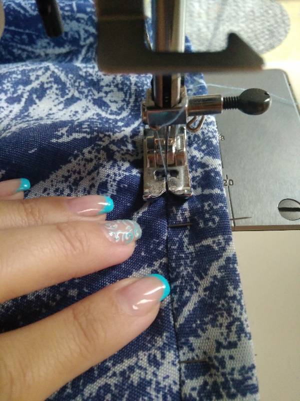 Внимательно следите за тем, чтобы боковые швы детали были строго параллельны срезам ткани, как я показала на фото. В противном случае, возможен перекос всего изделия. Выкраиваем вторую деталь, аккуратно, не растягивая боковые швы, скалываем их булавками и делаем строчку. Обметать швы.