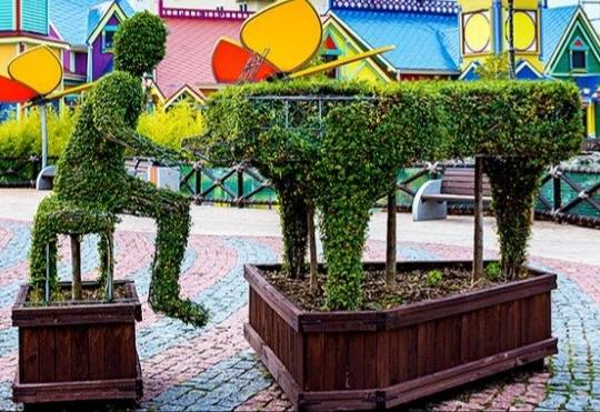 Очень заинтересовали зеленые фигурки. В Сочи-парке их довольно большое количество.