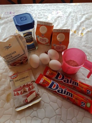 3 желтка + 1 яйцо + 150 грамм сахара взбить. Убрать в холодильник и пусть пока там постоит