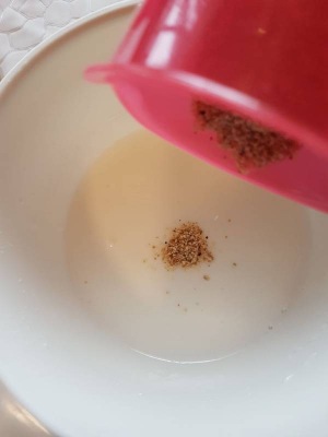 1 столовую ложку кофе растворить в кипятке, очень горячем. Воды примерно 50 гр, много не надо, иначе жидко будет