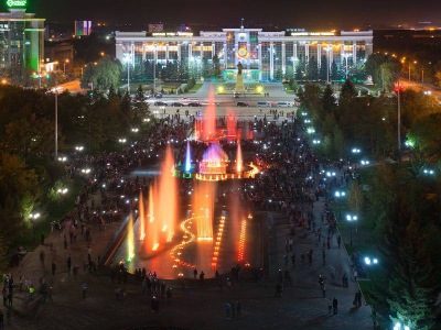 В центре - поющие фонтаны. Там чуть дальше стоит Абай - великий мыслитель и поэт казахского народа. А за ним находится акимат. Фонтаны - наша гордость 👌 Очень приятно летним вечером сидеть и слушать музыку, смотреть на разноцветные брызги фонтанов.