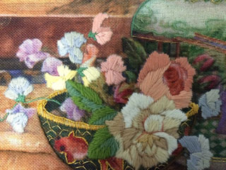 В этой работе используется для вышивки как обычное мулине, так и шерсть. Шерсть