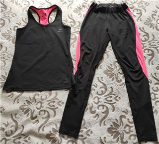 2. Майка однотонная или с набивным рисунком из хлопка и лайкры, брюки из полиамида и лайкры - это проверенный покрой, который подходит для любых занятий - от степа до йоги.