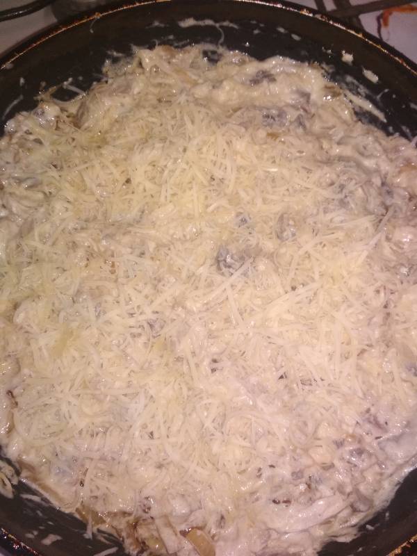 Натираем на крупную тёрку сыр, сверху посыпаем и отправляем в духовку. Ненадолго, минут на 15-20 при t°170-200 .
