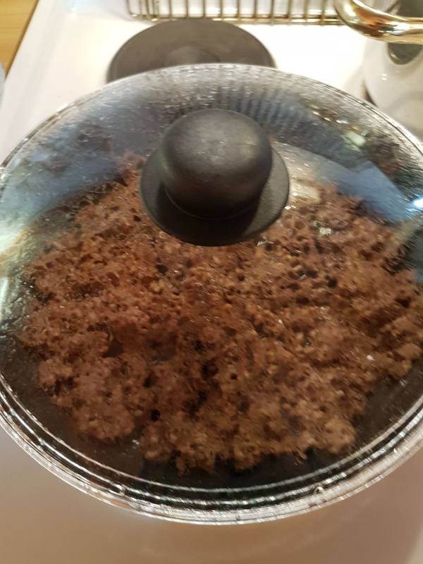 4. На другой сковородке обжариваем фарш до готовности (тоже добаляем по вкусу соевый соус)