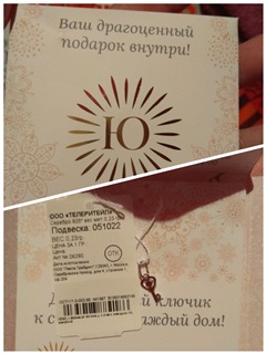И была в конвертике маленькая серебряная подвеска в виде ключика. Мелочь, а приятно.