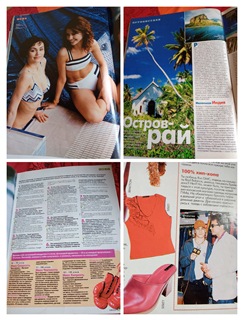 Еще есть публикация "Звездные каникулы" с фотографиями звезд с отдыха, таких как Брюс Уиллис, Мел Си, Джордж Клуни и Камерон Диас.