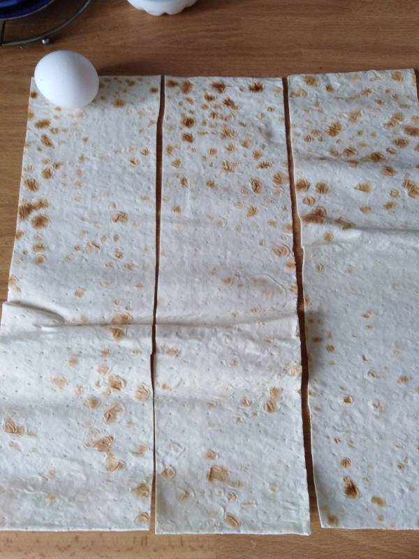 Из листа лаваша 5 шт полосок нарезаем в ширину.