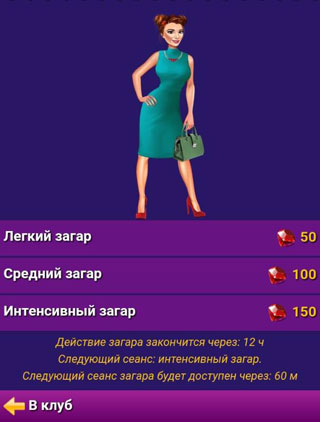 Загар держится 12 часов, затем пропадает. Если вы хотите, к примеру, средний загар, то в течение 12 часов после лёгкого вам обязательно нужно заглянуть в Студию загара и оплатить сеанс. В противном случае в Студии будет доступен лишь лёгкий загар. Аналогично и с интенсивным загаром.
