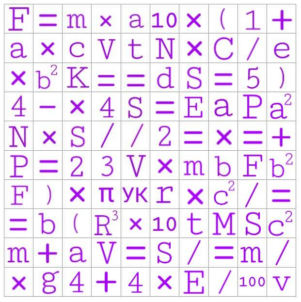 Цель игры: в сетке 10×10 клеток найти игровые формулы (их 5) среди остальных формул школьной программы. За выполненное задание вы получите 500 рубинов. Найдите все формулы и заберите еще 500 рубинов дополнительно.