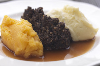 Самыми знаменитыми блюдами Шотландской кухни являются «хаггис» и, подаваемый с ним гарнир, «нипс-таттис». Хаггис делают из рубленных бараньих потрохов и лука, толокна, сала, соли и приправ, сваренных в бараньем желудке. Нипс-таттис – это пюре из запеченных брюквы и картофеля, кстати шотландцы, как и белорусы, уверены, что у них лучший картофель в мире, и в некоторых заведениях по примеру винных карт есть картофельные карты. В XVIII веке хаггис ели бедняки, т.к. это блюдо готовилось из продуктов, шедших на выброс. Роберт Бёрнс, чей день рождения празднуется 25 января (этот день является национальным праздников в Шотландии, так велика гордость шотландцев своим поэтом), посвятил целую оду хаггису: