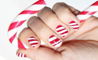 Помимо просто различных вариантов французского маникюра можно еще и рисовать рисунки на новогоднюю тему: снежинки, снег, полоски конфетные, елочки и даже ремешки Санта Клауса