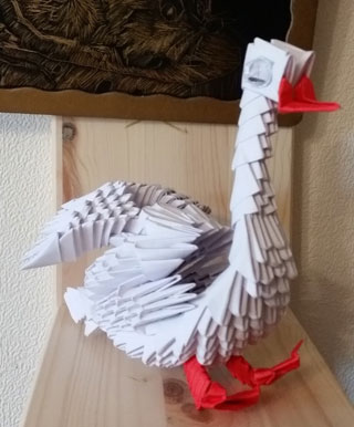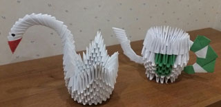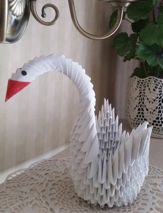 Модульное оригами – это создание фигурок из модулей – сложенных одинаковым способом листов бумаги. Модули складываются и вкладываются друг в друга определенным образом, и получаются шары, вазы и даже лебеди