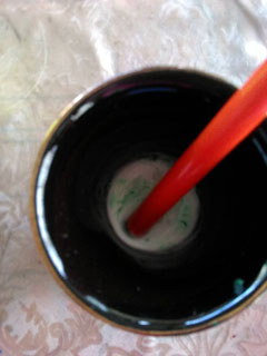 Перемешиваем, пока не увидим результат. Вся смесь прилипнет к палочке, которой вы перемешивали.