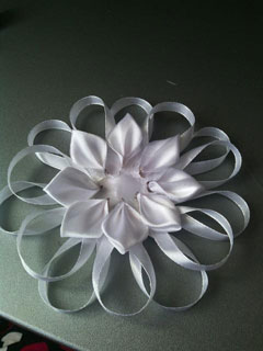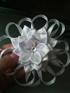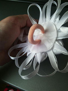Наше украшение почти готово, теперь цветочек необходимо прикрепить к резинке, чтобы можно было украсить им причёску.