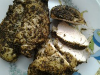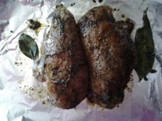 Утром достаем филе из рассола, даем ему просохнуть. Обмазываем его заправкой из специй и трав. Заворачиваем в фольгу.