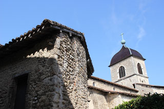 Добраться до Перужа из Лиона можно на машине или общественным транспортом: на автобусе или на поезде. Я выбрала последний вариант и, сев в поезд St-Etienne-Châteaucreux > Ambérieu-en-Bugey на лионском вокзале Lyon-Part-Dieu, оказалась через 30 минут на станции Meximieux-Perouges. От станции до Перужа есть два пути: короткий, идущий вдоль дороги, не очень интересный, продолжительностью минут 15-20, и ведущий к нижним воротам деревни и длинный, около 30-40 минут, пролегающий через приятный городок Максимьё, а также мимо живописного пруда и полей с пасущимися на них коровами, заканчивающийся у верхних ворот. Я решила использовать 2-ой маршрут и, пройдя через еще спящий утренний Максимьё и мимо умиротворяющих пасторальных пейзажей, как будто перенеслась на машине времени на 7 веков назад.