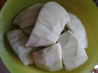 Нарезаем на кусочки, как будет удобно, заливаем холодной водой и кипятим 5 минут.