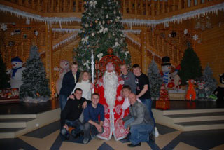 Посмотрите, мы здесь не одни, вместе с нами в гости к дедушке приехала команда КВН "Триод и Диод". И уже фотографируется с Дедом Морозом!