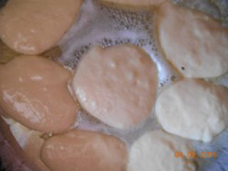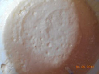 Приготовление: 2 яйца взбиваем с 2 ст. ложками сахара, добавляем щепотку соли,2 ч. л. разрыхлителя, немного ванильного сахара (по желанию) и молочную сыворотку, 2 стакана. Медленно перемешиваем.