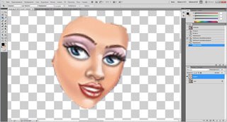 Когда вы будете довольны результатом, можете приступить к следующему этапу: сделать Моднице легкий макияж для того, чтобы лицо по цвету стало еще больше приближено к картинке.