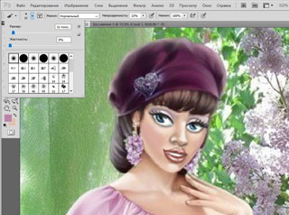 Для этого нужно ткнуть ПИПЕТКОЙ на розовом цвете на картинке и мягкой кисточкой небольшого размера и маленькой прозрачности (все эти показатели находятся над рабочим окном фотошопа, когда открыт инструмент) вам нужно слегка провести Моднице по щекам, нарисовав естественный румянец.