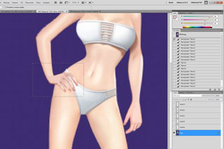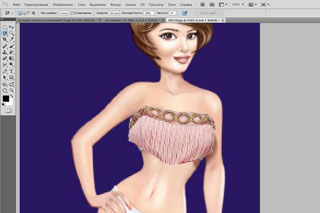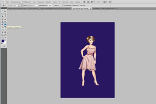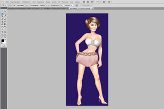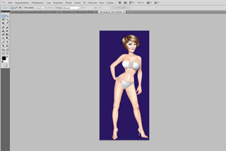 Также сохраним на компьютер Модницу, предварительно сделав ей короткую прическу, чтобы нам не мешали волосы, и надев на нее открытый купальник. Туфельки подберем, подходящие к платью. Откроем сохраненную картинку в программе.