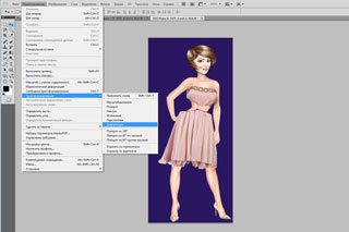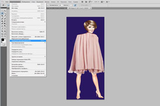 Теперь немного подгоним юбочку, чтобы она лучше села на бедрах. Для этого, находясь на слое с юбкой, идем в закладку РЕДАКТИРОВАНИЕ - ТРАНСФОРМИРОВАНИЕ - ДЕФОРМАЦИЯ.