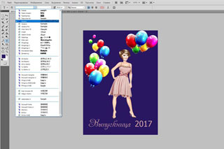 Выбираем шрифт и цвет шрифта (в этой картинке я предпочла использовать цвет платья) и пишем какой-нибудь подходящий к случаю текст.
