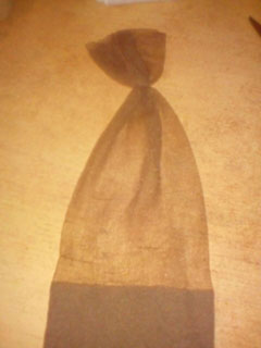 Теперь этот мешок делим на две части.Низ должен быть меньше, чем верх.Также пережимаем и затягиваем нитками.