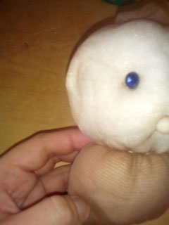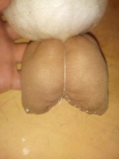 Чтоб формы пупса были пышнее и без вмятин,засовываем иголку и приподнимаем наполнитель в тех местах, где это требуется.
