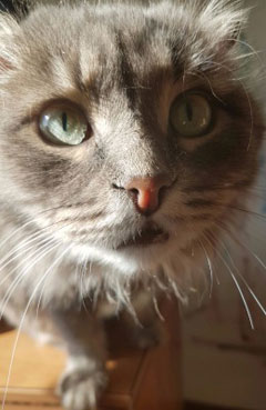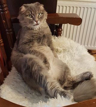 Чувствует себя Винча полноправным хозяином, утром громко требует еду. А еще у этого кота смешное поведение: садится, как человек, на стулья, не боится воды, подстригания машинкой, шума пылесоса. Мы в нем видим философское отношение к жизни
