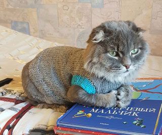 На семейном совете выбрали имя Кот да Винчи (просто книжку такую дети недавно прочитали). Чтобы наш Винча не мёрз, мы связали ему кофточку.