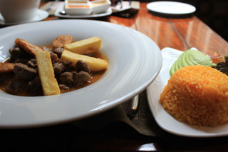 Авокадо вместе с рисом часто подаются в качестве сытного гарнира к основным блюдам. На моем столе в Café Plaza Grande они аккомпанировали традиционному рагу со сладковатым соусом из козлятины секо де чиво (исп. seco de chivo). Подготовленное мясо обжаривают со специями в растительном масле, затем тушат в смеси пива и сока наранхильи, что делает его мягким и придает ему приятный сладковатый фруктовый вкус и аромат.