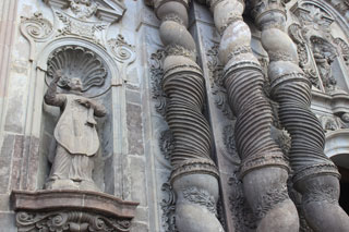 Строительство этого шедевра барочной архитектуры началось в 1605 году и продолжалось целых 160 лет. Множество архитекторов, работавших в течение этого долгого времени над изысканным и ювелирно исполненным внешним и внутренним убранством храма, немного отходили от классического барокко, привнося новые идеи и разбавляя его элементами мавританского и неоклассического стилей. Вход в La Compañía для иностранных граждан стоит 2 американских доллара (в 2000 году национальная валюта Эквадора сукре (исп. sucre) была отменена, и в качестве платежного средства стал использоваться доллар США). Стоя на улице перед входом, я не могла оторвать глаз от фасада здания, тончайшая, детализированная резьба по камню которого, отображающая католическое учение о жизненном пути, заставила меня забыть о всем бренном и унесла куда-то очень высоко.