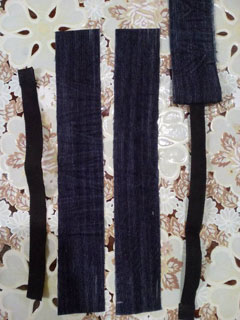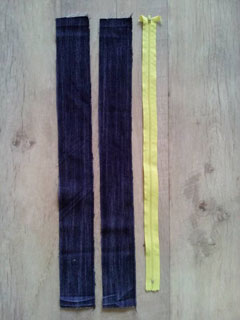 Теперь вырезаем 2 боковые детали, равные по длине длине молнии и шириной примерно 5-6 см (это с припусками на швы).