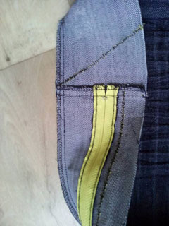 Пришиваем молнию так, чтобы её было видно, если она цветная. Отстрочить. Можно проложить декоративные строчки цветными нитками.
