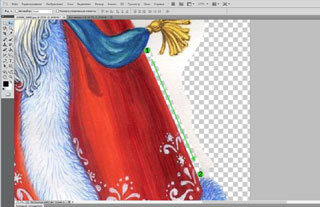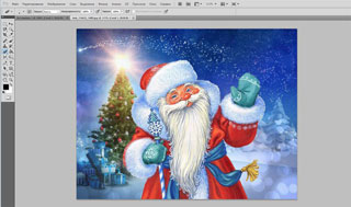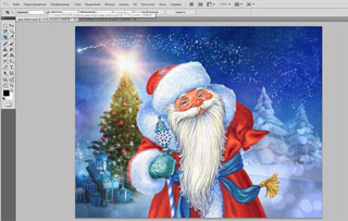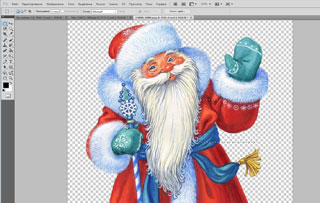 Вам, безусловно, здорово повезет, если удастся найти клипарт (изображение Деда Мороза без фона). Я сохранила картинку с фоном, поэтому первым делом мне необходимо его убрать.