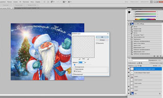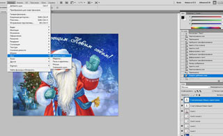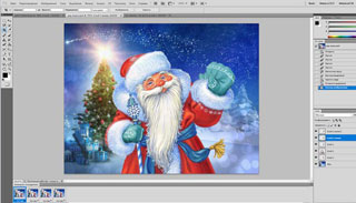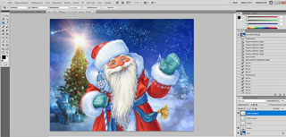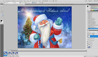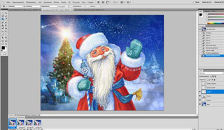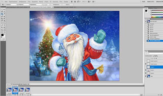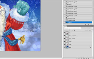В слоях (внизу справа) переставляем слой с Дедом Морозом на самый верх.