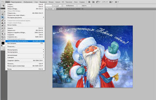 Теперь я свой клипарт поставлю на какой-нибудь другой фон. Например, сюда. Можно было, конечно, поставить Деда Мороза и в полный рост, но мне захотелось, чтобы изображение было покрупнее. Поэтому я увеличу его размер с помощью СВОБОДНОГО ТРАНСФОРМИРОВАНИЯ и на картинке оставлю только часть клипарта.
