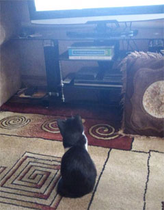 Ему уже 4 месяца, но мама Даша его до сих пор умывает, приносит ему букашек и стрекоз, зовет кушать. Котенок любит смотреть телевизор.