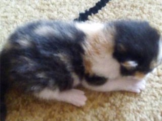 А недавно Даша принесла в дом маленький черно- рыжий комочек, похожий на мышонка. Оказалось, что это кошечка, сегодня у нее открылись глазки, и весит она уже 200 гр. Я назвала ее Василиса.