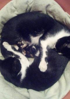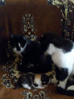 И теперь наше кошачье семейство увеличилось. Даша любит и заботится о них одинаково, хотя разница у котят в 4 месяца