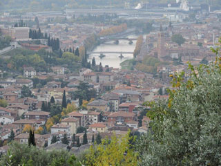 Сегодня мы посетим Верону, город на северо-востоке Италии. Вот так выглядит этот город и река Андиже с холма, примерно в 20 км от города.