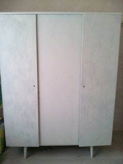 По этому же принципу я возродила и старый шкаф, но он ещё не закончен, осталась пара штрихов – прикрутить новую фурнитуру.