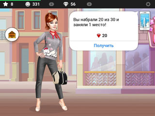 Как и в любой другой занимательной игре, всегда очень хочется выиграть и получить приз. Вот и я мечтала получить хотя бы какое-то призовое место на подиуме. И о чудо! Моя мечта сбылась!! Моей Моднице присудили первое место! (Кстати, вы обратили внимание на чудесные тапочки, надетые на мою Модняшу? Как бы мне хотелось, чтобы они как можно скорее появились и у нас в игре!!)
