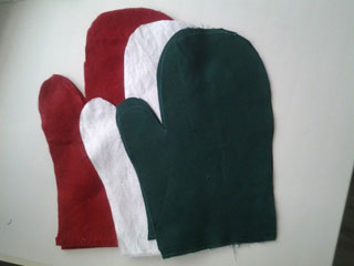 Вы можете подобрать на свой вкус из того, что есть под рукой. Но учтите, что ни в коем случае нельзя брать синтетические ткани, иначе ваши рукавички просто поплавятся, когда вы будете ими пользоваться, мы же не можем допустить такого