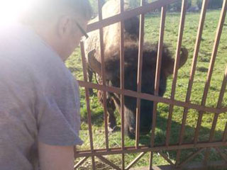 Всего в зубровнике два зубробизона (Миша и Августин) и две бизонихи (Манана и Мадам). На территории есть небольшой загончик для зубров: