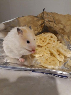 По дороге домой мы зашли в зоомагазин за кормом для рыбок. И тут я увидела маленького хомячка. Мне очень захотелось его. Так в нашем доме появилась Шуша. Назвали мы ее так, потому что она постоянно шуршала. Правда, мама называет ее Фигней.